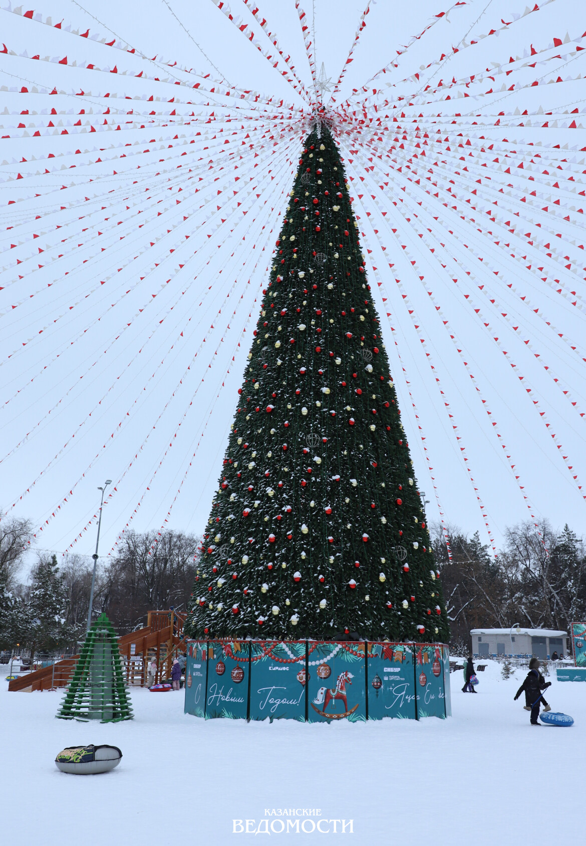 А вот в парке «Сосновая роща», что возле ДК химиков, царит особая новогодняя атмосфера. На достаточно небольшом участке разместились главные атрибуты праздника - огромная елка с развевающимися флажками, несколько деревянных горок, карусель с лошадками, красные сани, коробки с подарками, маленькие украшенные елочки, фигурки оленей… На деревьях висят звонкие украшения наподобие сережек с татарским орнаментом. И во всем этом чувствуется атмосфера прошлого века, она многих сюда и притягивает.