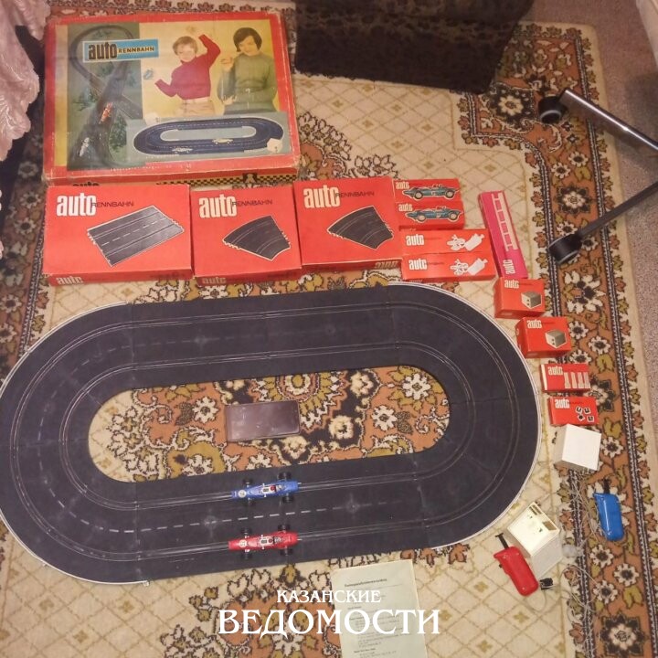 А произведено чудо было в дружественной Восточной Германии. Настоящий гоночный трек в форме стадиона, прямо-таки реальная гоночная трасса для двух машинок - красной и синей. Машинки управлялись пультами, которые были похожи на современные джойстики, правда, с единственным рычажком. И это было нереально круто!
