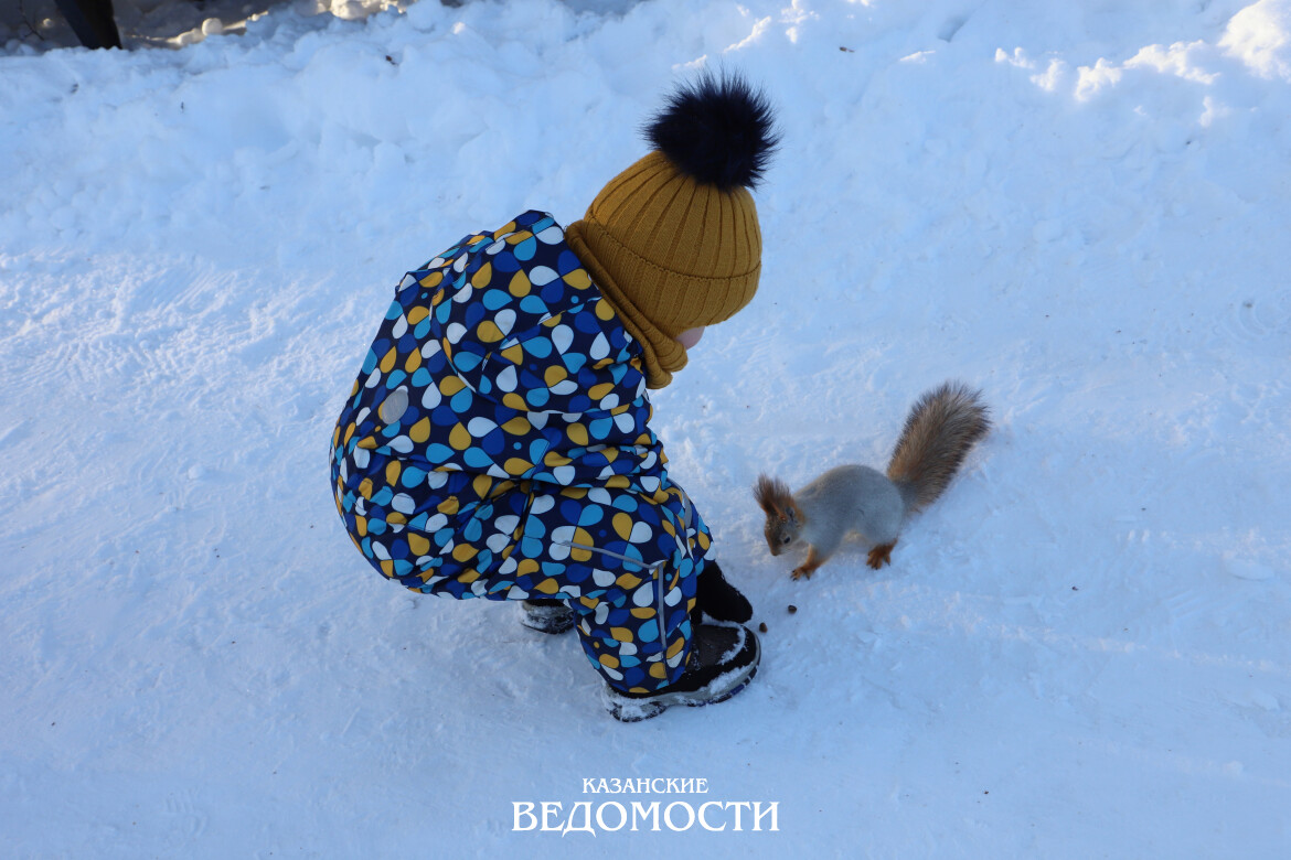 - Мы приехали из Москвы - взрослые и дети, всего 15 человек, - рассказала корреспонденту «КВ» Елена. - Отметили в Казани Новый год и проводим здесь каникулы, побывали уже и на спектакле в театре кукол, и на елках, и в музеях, и по экскурсиям походили. В Казани мы с сыном в первый раз. Мирослав очень любит белочек, в некоторых парках Москвы они тоже свободно живут, люди их кормят. Только у нас там они коричневые и поменьше, а у вас светленькие и покрупнее. И подходят близко к людям. Вот и сюда пришли посмотреть на ваших белочек. Мирослав хотел ее поймать, но, видно, белочке нужны были орешки, а мы их дома забыли.