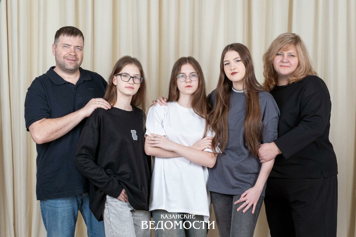 Старшая дочь Татьяна учится на первом курсе Казанского государственного энергетического университета, двойняшки Катя и Настя в этом году пошли в девятый класс.