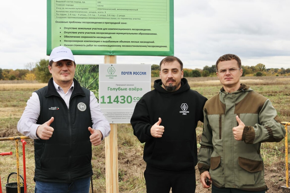 Сотрудники УФПС «Татарстан почтасы» АО «Почта России», экологического сервиса умного лесовосстановления «Сохрани лес» и природоохранных ведомств РТ посадили 11430 сеянцев сосны и ели на 3 га природного заказника «Голубые озера»