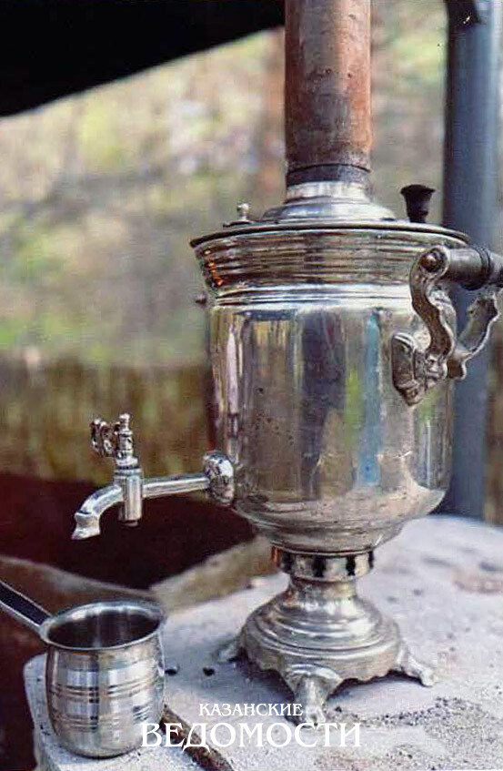 В трубу самовара он клал сухие щепки и тонкой лучиной поджигал их, раздувал огонь (часто сапогом, что всегда был под рукой: вверх-вниз, как гармошка), и вода закипала. Мама очень любила наблюдать за этим процессом. Затем дедушка Гайнетдин заносил самовар в дом, где его ставили на поднос в центре стола. Заваривали душистый плиточный чай в чайнике и ставили его на конфорку. На столе уже стояли банка с медом (у деда в огороде за домом была своя небольшая пасека), с пылу-жару из печи блины, кабартма, сметана, творог. Мама помнит, как они с бабушкой Могалимой ходили с полным ведром молока к более зажиточным соседям и сепаратор превращал молоко в сметану и масло.