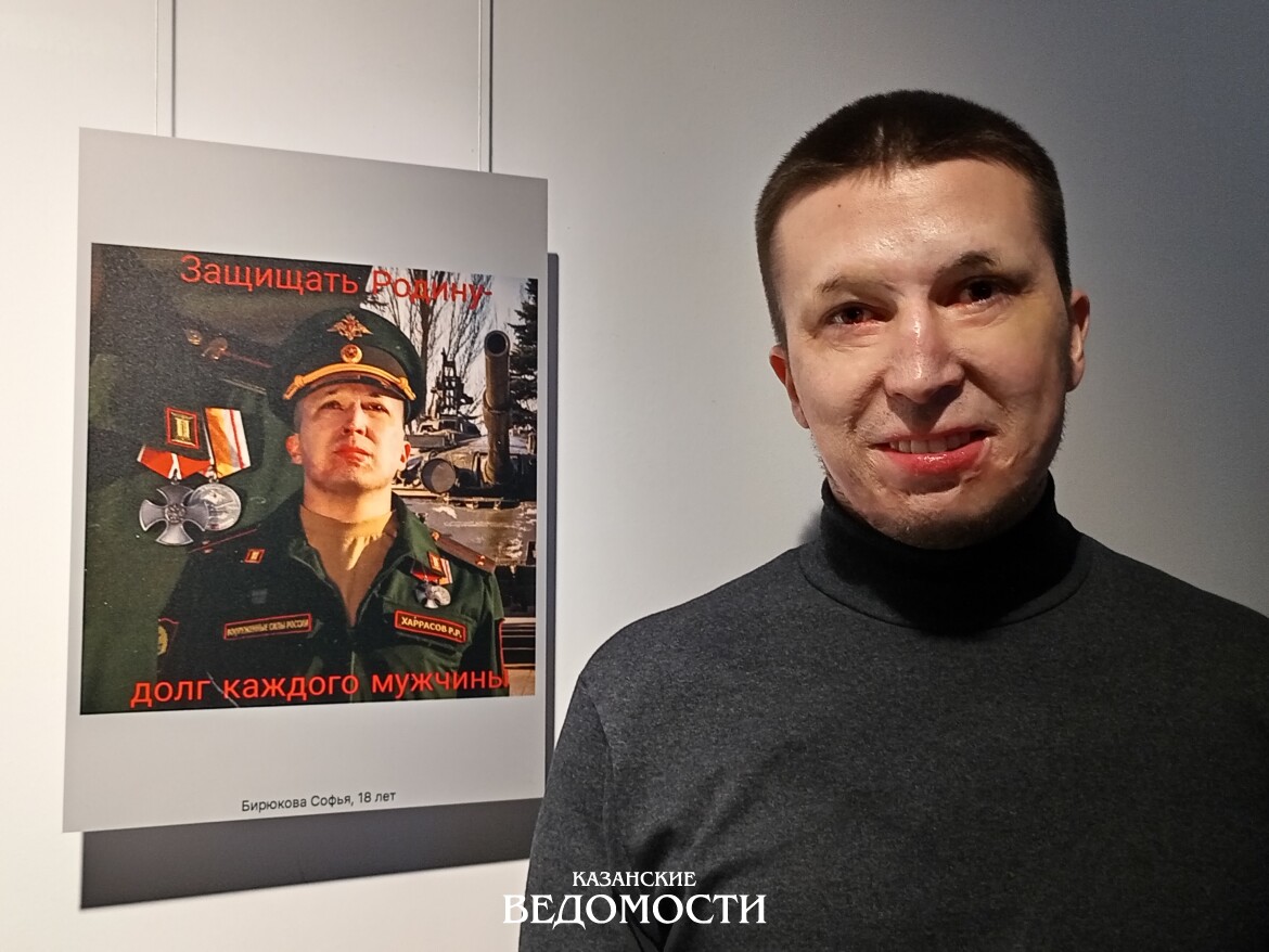С Русланом Харрасовым мы познакомились на выставке лучших работ конкурса графики «Защита Отечества». Именно его образ - образ танкиста, горевшего в танке, но чудом выжившего, запечатлен в работе Софьи Бирюковой.