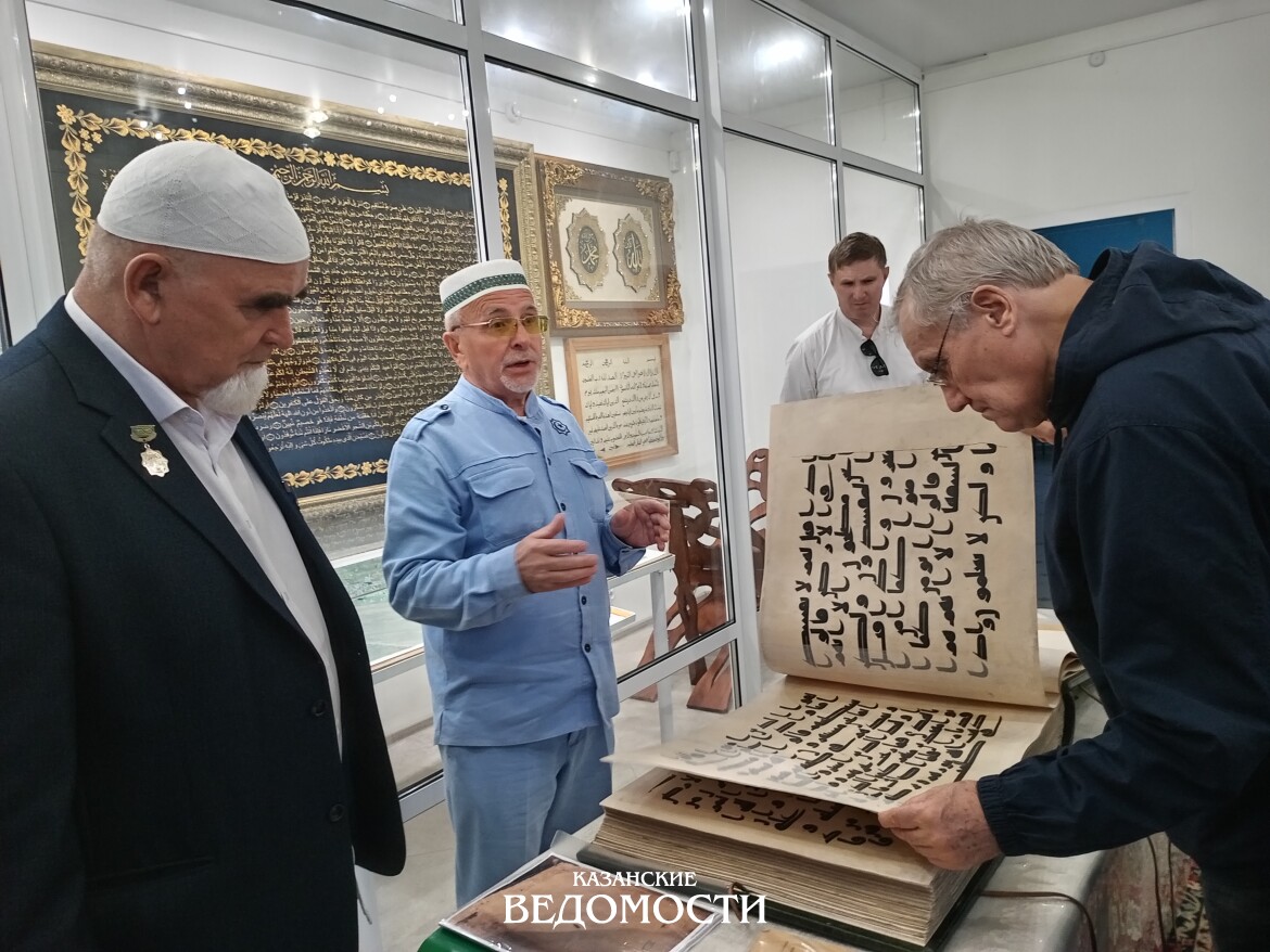 Специально для участников конференции один из экземпляров Корана Османа вынесли из стеклянной витрины, где он хранится. Гости смогли прикоснуться к священной книге мусульман и полистать ее страницы.