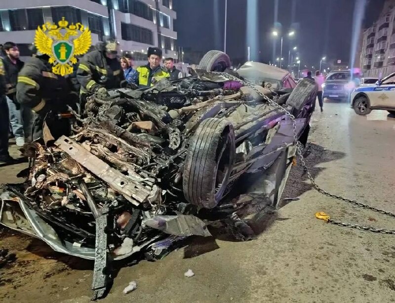 После удара иномарка перевернулась, повредив пять припаркованных автомобилей. Затем в Lexus вспыхнул пожар. В результате происшествия водитель и два пассажира погибли на месте.