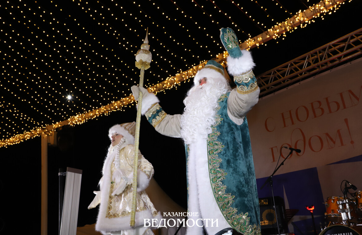 Во время театрализованного представления на сцену вышли главные новогодние персонажи - Дед Мороз и Снегурочка. И сразу же по традиции зажглись огни на центральной новогодней елке. Затем началась концертная программа с участием известных артистов. Открыл выступления духовой оркестр Just Brass, потом выступили Ильгиз Шайхразиев и Maisi Music, барабанное шоу «Hoy-Xay», вокальное трио «Хыял» с песнями «Снежинка» и «Ильче бага», группа «Амурус». Завершили концертную часть казанская певица Хопелес и группа «Майкрайз».