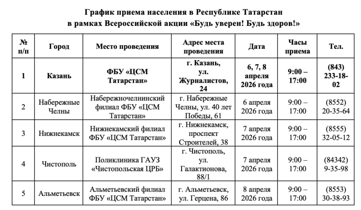 Росстандарт проводит всероссийскую акцию «Будь уверен! Будь здоров!», приуроченную ко Всемирному дню здоровья. В Татарстане она пройдет с 6 по 8 апреля 2026 года.