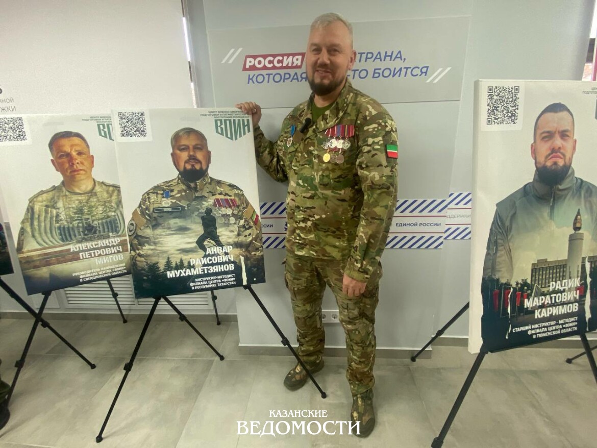 От Татарстана в экспозиции представлен ветеран боевых действий, кавалер ордена Мужества, инструктор татарстанского филиала центра «ВОИН» Анвар Мухаметзянов.